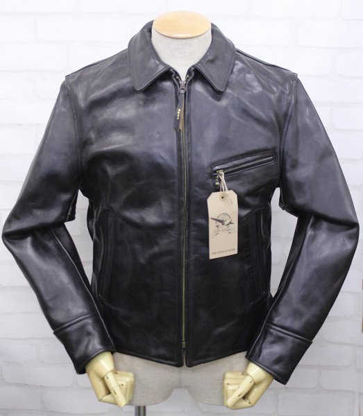 1J6815/新品 エアロレザー ハーフベルテッド ブラック レザーライダース 38