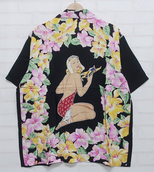 5T3737/リアルマッコイズ Pine McSwine ネイビーガール バックパネル アロハシャツ THE REALMcCOY'S