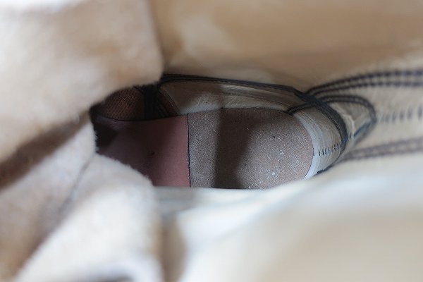 タンに若干の薄シミと、右足の内側の側面に少しのスレがございます。